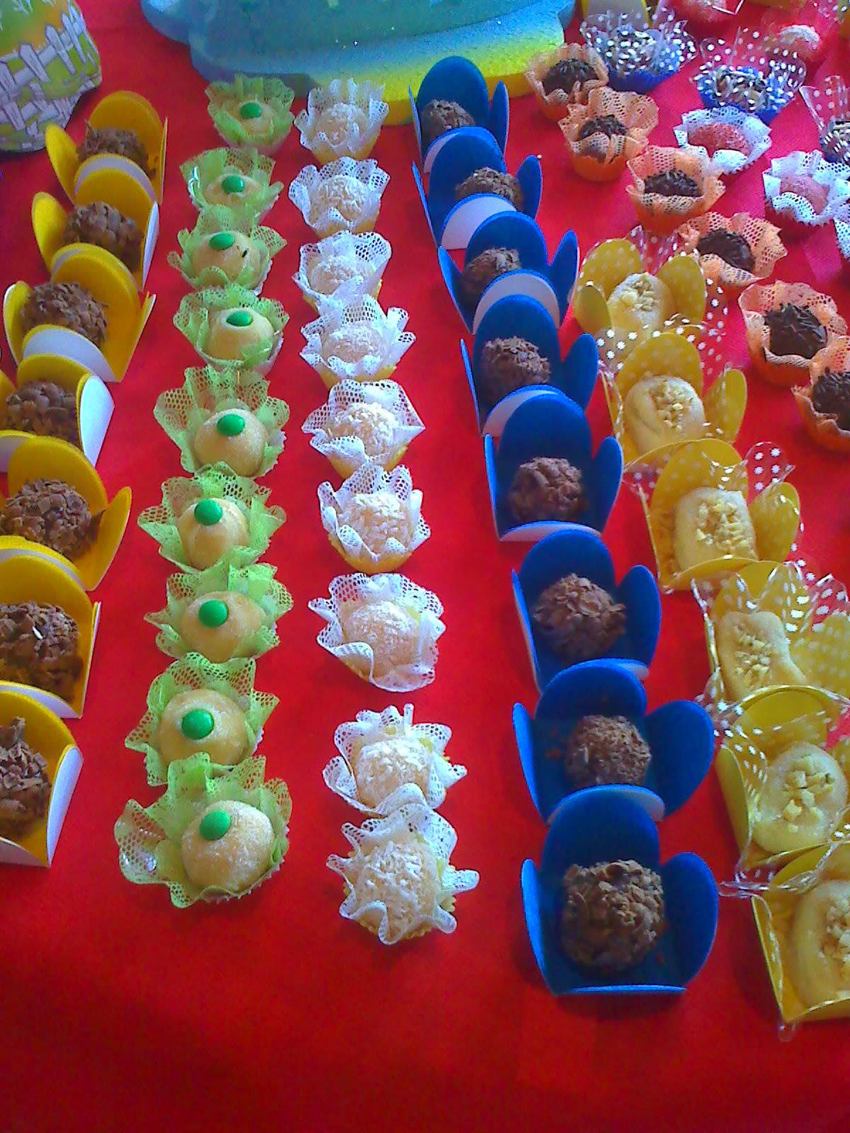 colorido verde ou em chocolate branco ralado.Colocar em forminhas